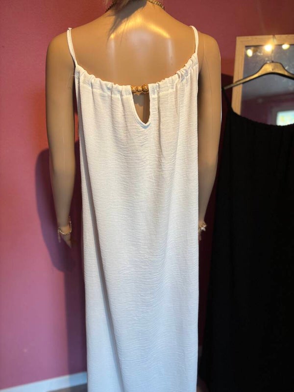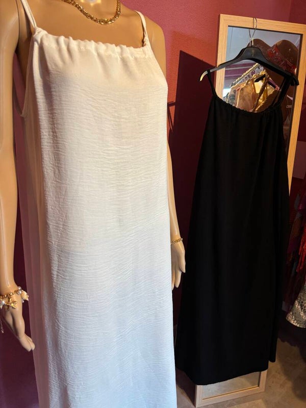 De jurk is verkrijgbaar in de kleuren zwart en wit.
