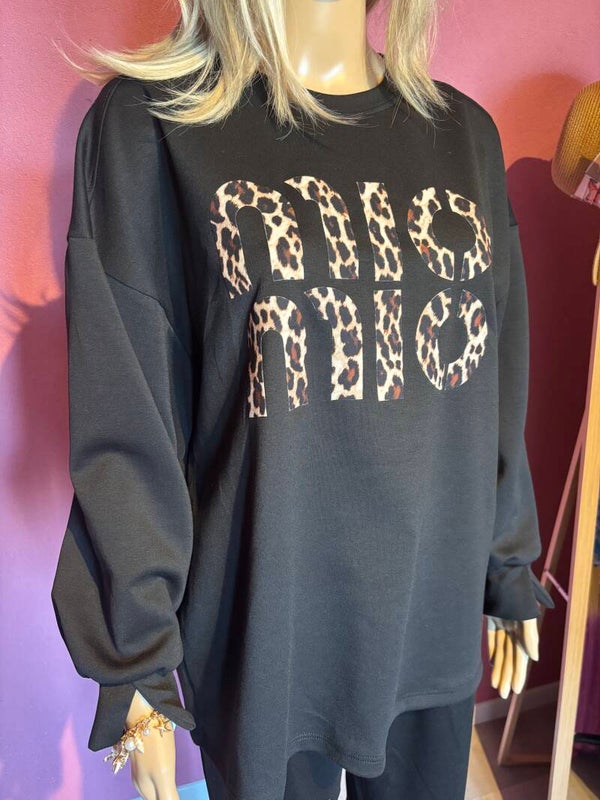 Deze mooie trui met panter bedrukking is helemaal leuk voor het najaar! Combineer het met een van onze mooie panter gilets.