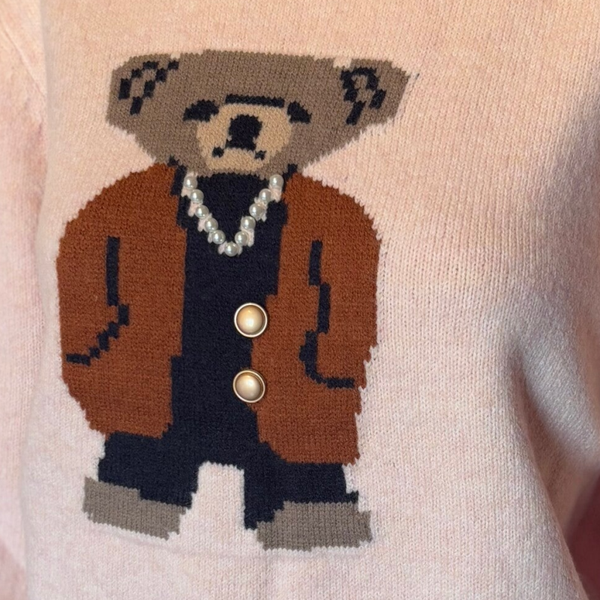 Deze heerlijke truien zijn nieuw in onze collectie. De trui is zacht en prachtig van kleur. Het beertje op de trui geeft net wat meer elegantie aan de trui. Het beertje heeft een mooie 3D ketting van pareltjes en twee 3D knoopjes in een bronze kleur.