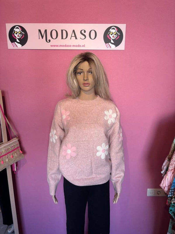 Deze heerlijke truien zijn nieuw in onze collectie. De trui is zacht en prachtig van kleur. De mooie gestikte bloemen geven de trui een luxe afwerking.