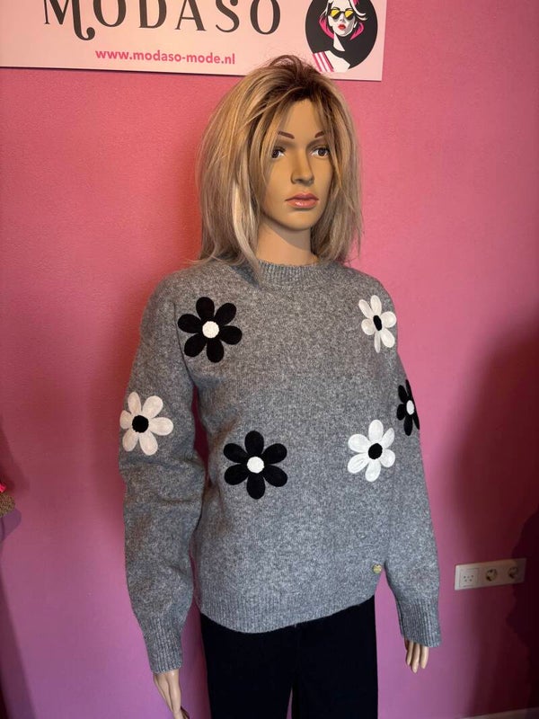 Deze heerlijke truien zijn nieuw in onze collectie. De trui is zacht en prachtig van kleur. De mooie gestikte bloemen geven de trui een luxe afwerking.