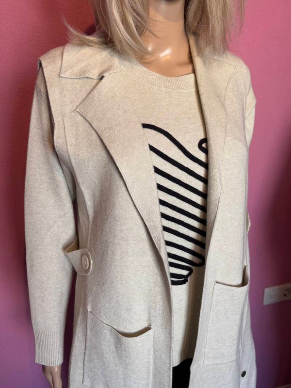 De trui is verkrijgbaar in één maat en te dragen van maat S tot en met maat L. De trui is verkrijgbaar in de kleur Taupe en Creme wit.