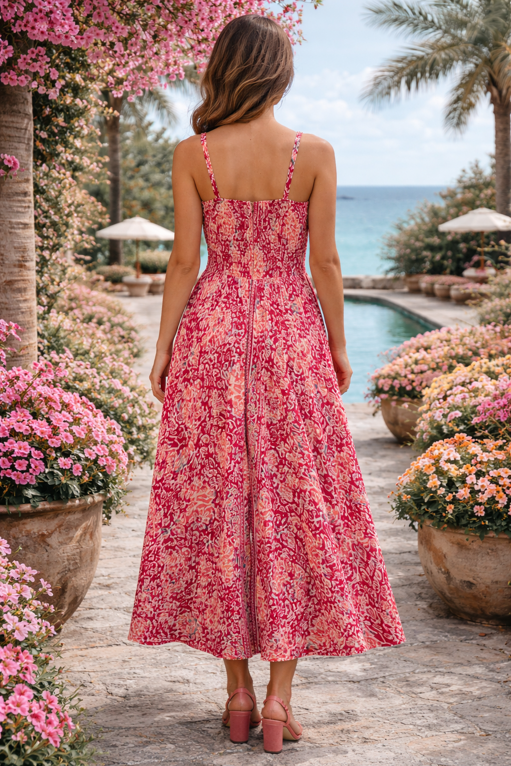 eze elegante bohemian maxi jurk voor dames is een echte eyecatcher. De rijke rode tint gecombineerd met een verfijnde print geeft deze jurk een luxe en vrouwelijke uitstraling. Perfect voor zomerse dagen, vakanties, bruiloften of een diner aan zee.